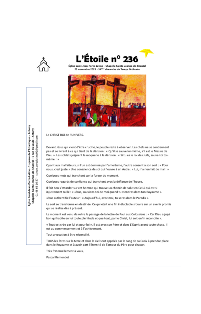 Feuilles Paroissiales 2025 GénéralL’étoile 234 19 novembre – Trois informations importantes L’étoile 234 > Lire plus