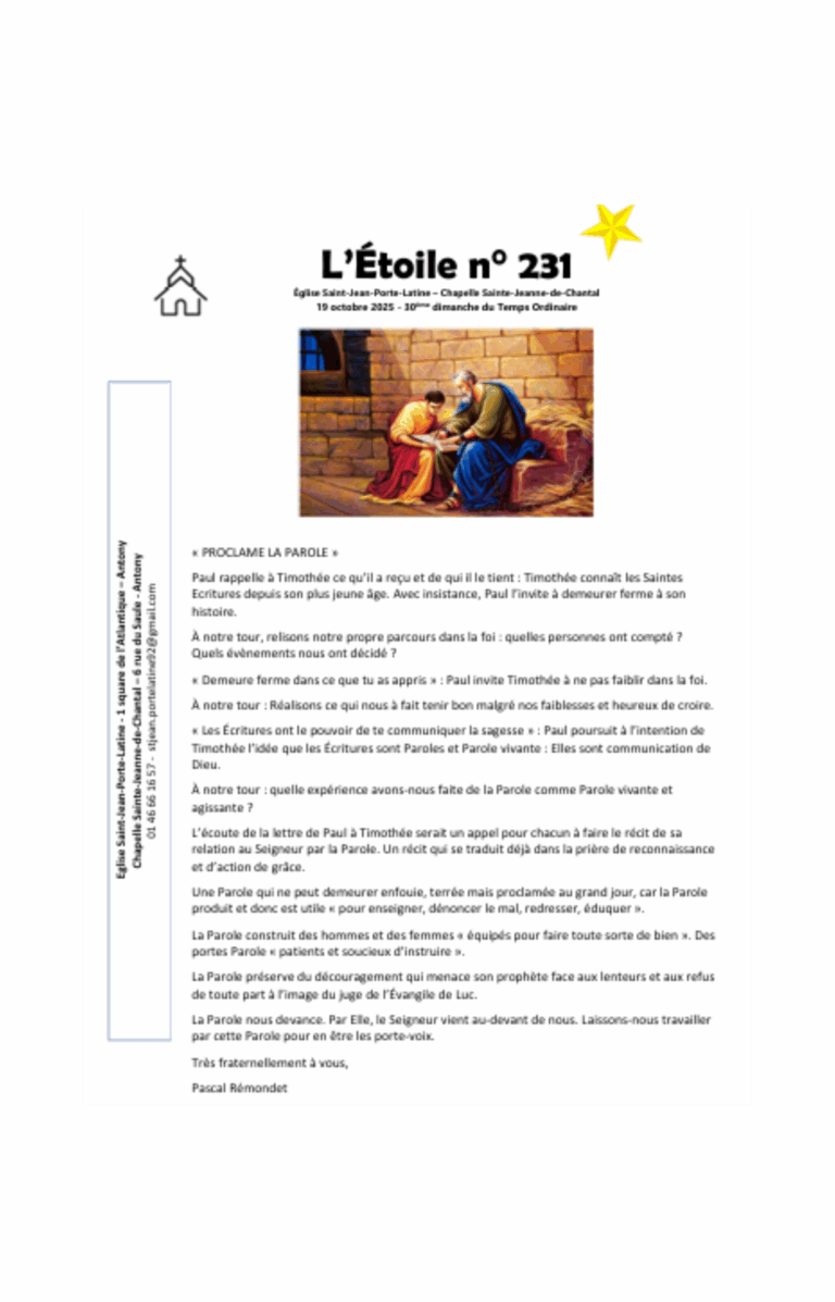 Feuilles Paroissiales 2025 GénéralL’étoile 231 19 octobre – « Proclame la parole » L’étoile 231 > Lire plus